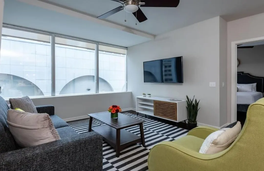 The spacious 1-bedroom Bold Cozysuites With Gym, Roof #8 is ideally located just an 8-minute walk from The Dallas World Aquarium. Featuring an outdoor pool and a fitness room, the apartment is situated just near Thanks-Giving Square.
